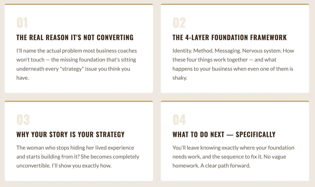 Real clarity, real frameworks, a real next step. This is not a pep talk.